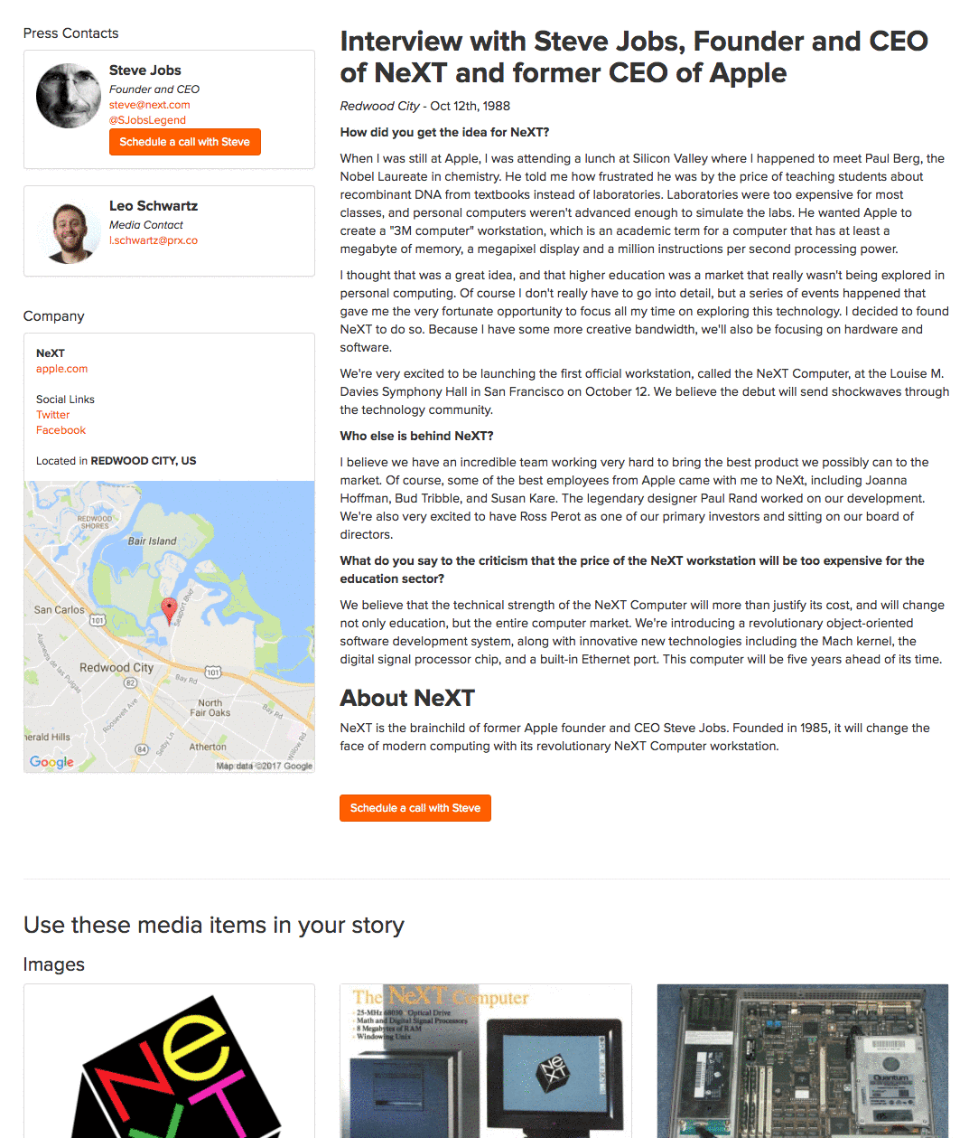 The Media Brief we present to the journalists, with the interview scheduler button