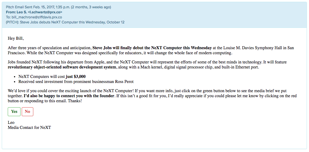 Here is a sample email pitch we send to journalists